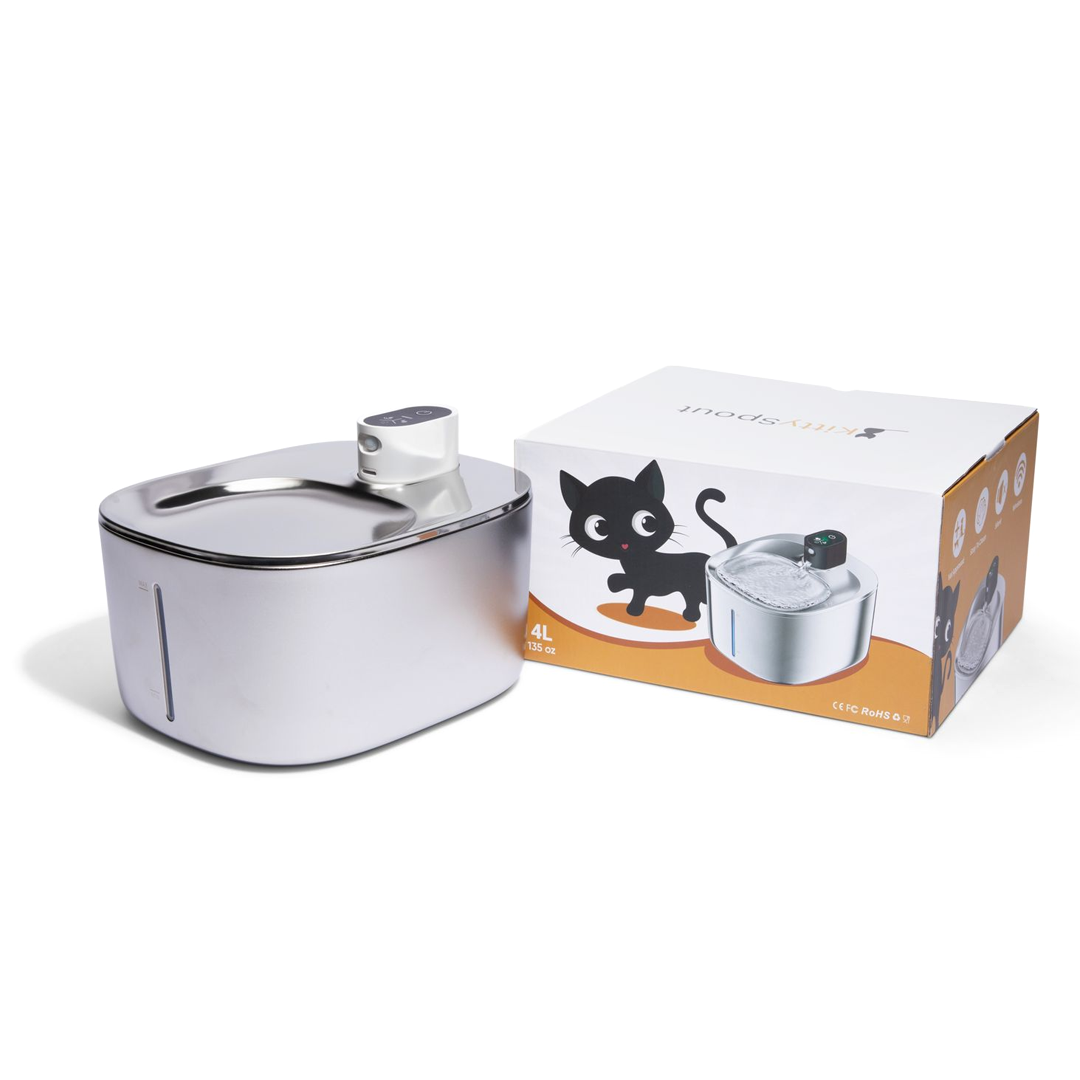 The KittySpout™ Health & Happiness Cat Kit is designed to meet cats’ drinking needs while keeping maintenance simple for owners. Shaped like a faucet, this design feels natural to cats who instinctively prefer running water. Its steady flow captures attention and encourages pets to drink more often, helping them stay hydrated without effort. Crafted from stainless steel, it is both durable and safe. The BPA-free design ensures the water remains pure and free of harmful substances. With a double filtration system using activated carbon and sponge, the water is kept clean and fresh every day. Owners will appreciate its ultra-quiet pump, which runs below 20db, ensuring it does not disturb sleep or daily routines. Its generous 4L capacity reduces the need for frequent refills, while water level indicators make it easy to track when it is time to top up.